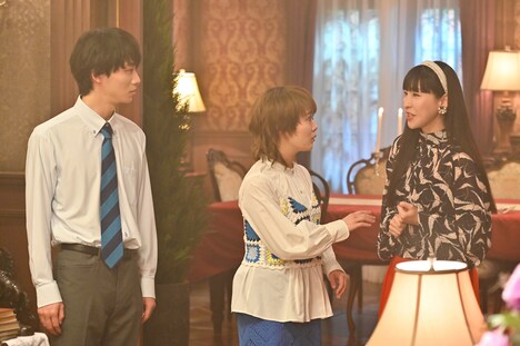 公開された場面写真には、学ランをまとった“超ウブ男子”な海造と、セーラー服を着た“あざと女子”伊織の青春時代が切り取られている。また、こころと漣の姿も収められた。