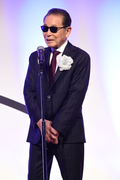 半世紀近くテレビの第一線で活躍してきた稀有な足跡が評価されたタモリ。手にしたトロフィーをまじまじと見つめながら「この式場に来てから事の重大さに気付きました。光栄に思っています」と述べ、その重みを実感する。そして「作品であれば私1人だけの力ではないですが、今回は『お前よくやったぞ』ということなので、ちょっと意味が違いますよね。この世界で活動してきて、ほぼ半分は“非難の歴史”ですよ。まず最初に『テレビでサングラスを掛けるのか?』から始まって。ようやくここいらで褒められ始めた。ちょっと気持ち悪く思いますけど(笑)」とひょうひょうと続ける。