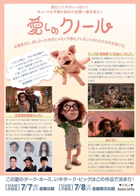 「愛しのクノール」の日本語吹替版は7月7日よりT・ジョイおよびイオンシネマ系劇場、字幕版は7月8日より東京・ユーロスペースほかで順次公開。