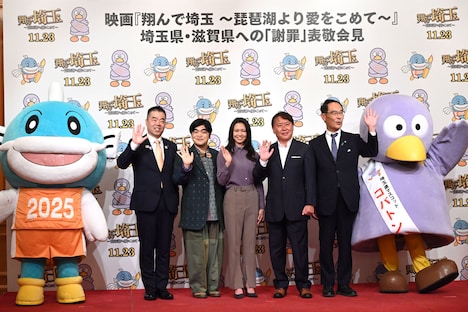大野は「埼玉県知事としては、一度作品でディスられたのに、さらにやるのかと。ちょっといい加減にしてほしいところではありますが、今日映画を観させてもらったら、やはりクスクス笑ってしまうんですよ。埼玉愛が感じられる映画にしていただき、そこは感謝しています」と吐露。三日月からも「なんで飛び火させんねんっていうのが最初の印象だったんですけど(笑)、映画を観たら、いろいろなところに愛があふれていました。この映画を通じて滋賀県に対する誇りや愛情がさらに湧けばいいなと。応援したいです」と満足げなコメントが飛び出し、武内は「お墨付きをもらったようでうれしい」と胸をなで下ろした。