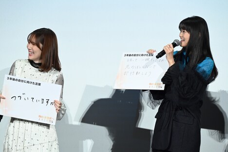 そのほか早見が「3年って一瞬でしたよね? 先のばししないで即行動しよう」、堀内が「熟成」、吉原が「自分が出あえたステキな大人にあなたはなれていますか?」、細谷が「止まるんじゃねえぞ」と前向きな言葉を掛ける横で、「まだ子供部屋ですか?」と答えた中村。彼は「気に入ったものを衝動買いする癖がありまして、先日40kgある150万円のフィギュアが届きました」と打ち明けてキャスト陣を驚かせる。そして「まだ17才?」と書いた井上は「やめどきがわからない……」と笑っていた。