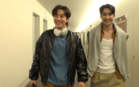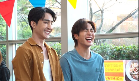春田と牧が訪れるタイ料理店「ムーンライトチキン」の店員役で登場したEarthとMix。番組は2人が撮影現場の朝食に舌鼓を打つ姿から始まる。そして2人が日本語のセリフに少し緊張しながらも、息の合った演技を披露する様子や、ドラマへの意気込みを語る独占インタビュー、豪華賞品をかけたゲーム対決の模様も切り取られた。