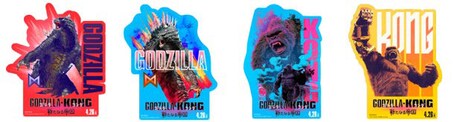 「ゴジラ×コングパン」は、ピンクと黄色の鮮やかな見た目で、2つの味を1つのパンに合わせることで今作を表現。ゴジラとコングがそれぞれ日米を代表する怪獣であるため、日本をイメージしたあんこ、アメリカをイメージしたコーンチーズが包まれている。なお「ゴジラ×コングパン」の購入者には、先着で「ゴジラxコング 新たなる帝国」のオリジナルステッカー4種からランダムで1枚プレゼントされる。販売劇場は、109シネマズプレミアム新宿を除く全国の109シネマズおよびムービル。