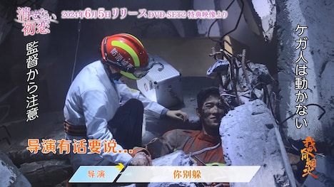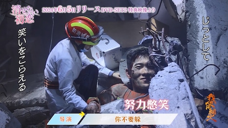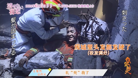 劇中にて大地震が発生し、瓦礫の下敷きになるソン・イエン。メイキングには、危険な状況の中、シュー・チンが救命措置を行い、おでこにキスをするシーンの舞台裏が収められた。キスをするシュー・チンに、ソン・イエンの固めた髪が刺さってしまう一幕も。シリアスな場面でも笑顔が絶えない現場であることが伺える。