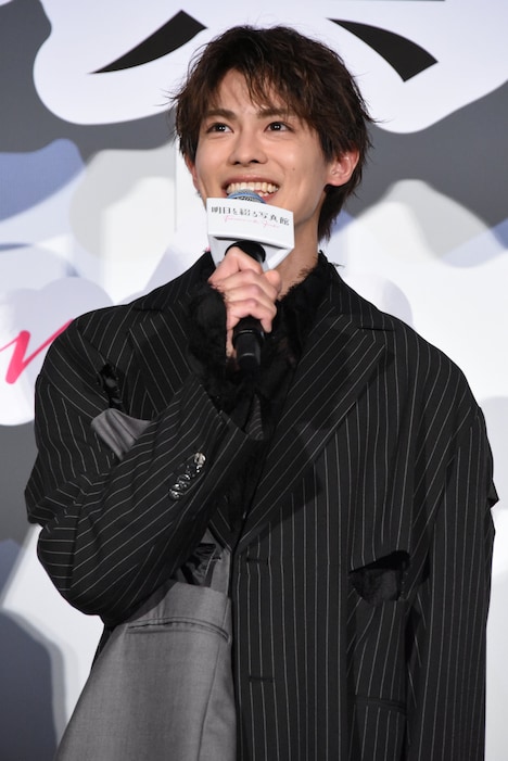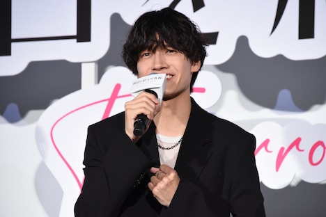 初主演作の公開日を迎え、心境を聞かれた平泉は「昨日はドキドキして眠れませんでした」と吐露。続けて「今日はオレンジのネクタイをしてきたんですが、さっき佐野くんがメンバーカラーのネクタイをプレゼントしてくれましたので、急遽これに変えてみました」と緑のネクタイを見せると、佐野は「めっちゃうれしい!!」と満面の笑みで喜びを表現する。本作のオファーについて平泉は「主役ならなんでもうれしい歳はもう過ぎましたんで。ただ、台本を読んだら僕にぴったりだったので、二つ返事でした」と振り返った。