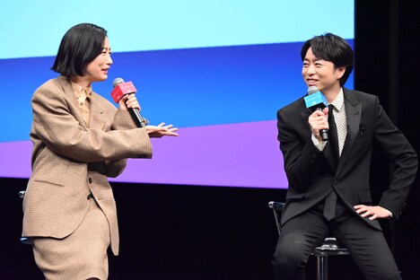 作品のテーマはシリアスだが、撮影現場は明るい雰囲気だという。水川は「同世代で生きてきた尊敬できる2人と、この年齢で一緒に作品を作れるという喜びがあります。撮影中にはふざけたり、どうでもいい話をしたりしますが(笑)、そこから助走をつけてシリアスなシーンに持っていける関係性を築けています」と笑顔で述懐。横で「さっきもパンの話をしましたね(笑)」と応じる櫻井は「大人になったと思うのは現場でワインの話をするとき」と話し、水川からナチュールワインをもらったというエピソードを披露する。玉山は「現場での距離感の取り方が素晴らしい。『無理しているんじゃないか』と思うぐらい周りを気にしてくださっているんです」と水川をたたえ、櫻井については「会話できているという優越感に浸っています。『今日は“翔さん”って2回ぐらい呼べた!』とこっそり思ったり」と打ち明けて「そんなことを思っていたんですか!」と櫻井から驚かれていた。