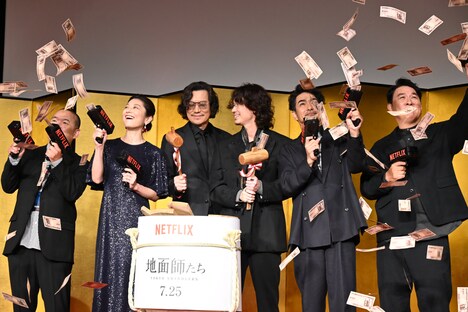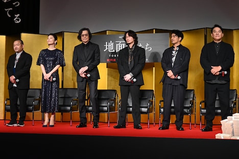 Netflixシリーズ「地面師たち」の完成報告会が7月4日に東京のザ・リッツ・カールトン東京で行われ、キャストの