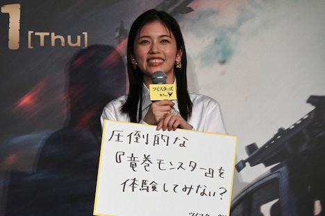 この日、上映されたのは4DX吹替版。事前に4DXでの鑑賞を体験している小芝は「もう圧倒される。迫力満点すぎます。4Dは初めてだったんですけど、ミサイルがここ(耳の後ろ)からピュンッて飛んでく感じとか。竜巻の砂埃がけむりで再現されていたり。本当に映画の中に入り込んだような感覚でした。たまに座席の後ろから押される感覚もあって。『ちょっと待って待って!』みたいな(笑)。テーマパークに来たようで、すごく楽しかったです」と感想を伝えた。