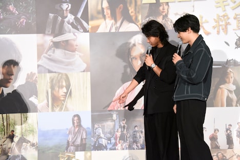 同じく30歳の吉沢は「僕にとって『キングダム』はたくさんの方に知っていただけた特別な作品。このシリーズに入るたびに、成長した姿を現場で見せられているかなと実感できた」と思いを馳せる。「キングダム2 遥かなる大地へ」で騎馬のアクションに挑んだ山崎が「『キングダム』にしかない迫力ですよね」と述べると、吉沢は「役者が乗っているとは思えないスピードで車と並走していた」と絶賛した。