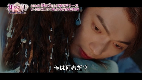 兄妹分として旅を続けてきた越祈への恋心を自覚した越今朝は、ある事件で越祈をかばって傷付く中「お前にとって俺は何者だ?」と切ない思いを伝えていた。このたび公開された本編映像“ラブ編”では、彼に抱き付いて「兄ではないわ」と答える越祈のおでこに、越今朝が優しくキスをする姿が捉えられている。