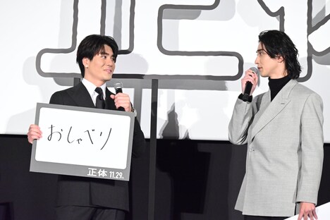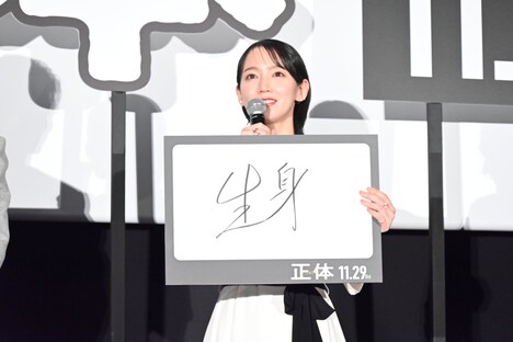 中盤には、横浜と共演する中で知った“正体”を各キャストがフリップで披露するコーナーも。「生身」と回答した吉岡は「アクションシーンは全部横浜さんがやっていて、危険を顧みず、すべてを映画に捧げている。心がむき出しの状態で演じられていた」と目線を送り、「仕事人」と答える山田杏奈も「常に何かを考えていらっしゃる印象。藤井さんとお話しされているときも、2人でずっと真剣に考えていた」と続ける。「おしゃべり」と書いた森本は「撮影中は役柄もあり、あまり会話をしなかった。食事に行ったときも目が合わなかったんです。でも撮影後は笑顔で話してくれたので『優しい人だ』と好きになりましたね」と笑顔を見せる。