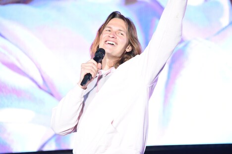 日本が舞台の「TOKYO VICE」に参加しているエルゴート。彼は駆け足で登場すると「ストロベリー・ミルクシェイクみたいな色でしょ!」と自らのファッションについてコメントし、着用しているアイテムについて説明する。MCが「日本語がお上手ですね!」と目線を送ると、エルゴートは「まだまだ勉強しています。最高の先生に教えてもらっているんです」と笑顔を見せた。