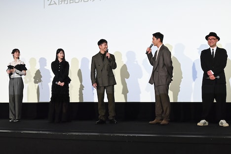 公開を迎えた気持ちを聞かれた三山は「まだ涙を流している方がいて、(舞台に)出てくるのが早かったかなと思いました(笑)。でも映画を観た直後の率直な気持ちが皆さんの表情からたくさん感じられます。こんなにタイムリーにお客さんの顔を見ることはなかなかないので、しっかり拝んで帰らせていただきます」とうれしそうに述懐。久保は「いろんな感情を抱えている人が出てくる作品なので、皆さんにどう受け取っていただけるのか楽しみにしていました。こんなにたくさんの方に観ていただけて、率直にうれしいです」と客席を見つめ、ファン・チャンソンは「去年撮影しましたが、ほぼ9年ぶりの日本の作品でした」「ここに入ってきたら皆さんの目が潤んでいて、すごいなあ!と思いました」とコメントする。