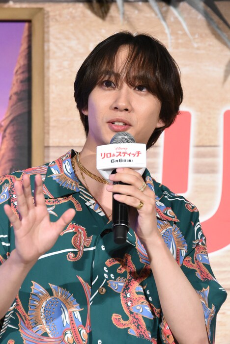 そして映画のテーマが“オハナ(家族)の絆”であることにちなみ、登壇者たちはそれぞれの“オハナ”についてトークすることに。山寺は「89歳の母と(東北楽天ゴールデン)イーグルスの応援をするのが生きがいなんです。この間は一緒に東京ドームで応援して、点が入ったときはハイタッチしました」と述べ、中村は「やっぱりグループのメンバー。声優に決まったときは僕以上に喜んでくれたんです。オハナとして、メンバーがいてくれてよかったな」と笑顔を見せる。MOMONAは「私もME:Iのメンバーがオハナです。この作品の収録に臨むときに、KEIKOが『がんばってね』と手作りのお守りをくれて力が湧きました。本当に大事な家族」と目を細めた。