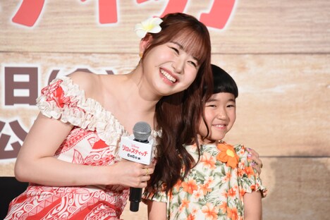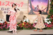 続いてME:IのMIU、RAN、SHIZUKU、AYANE、KEIKO、KOKONA、RINON、SUZUが客席から現れてMOMONAを「うれしい! 今(涙を)ギリで耐えてます」と驚かせる。なおCOCORO、TSUZUMIは体調不良により活動休止中のため欠席。メンバーを代表して、映画を鑑賞済みのSHIZUKUが「愛すべきリーダー、MOMONAちゃんの舞台を見届けにサプライズでみんなで来ちゃいました!」「ME:Iもスティッチたちのオハナのような関係性を目指して、これからも一緒にがんばっていきたいなと思います」とメッセージを届けた。するとMOMONAは「うわー! 大好き!」と喜びをまっすぐに伝え、山寺は「泣きそうになっちゃった」、中村は「鳥肌が止まらないです」と素直な気持ちをこぼした。