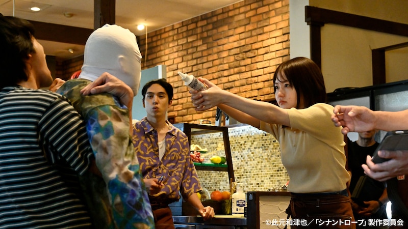 山田:洗剤のシーンは失敗したら衣装や目出し帽などをこの遅い時間にまるごと変えなきゃいけない、というプレッシャーと戦いながら演じました。でも洗剤が思ったよりもあまり飛ばなくて、洗剤を変えていただいたんです。「都成にもかけたい」とか「強盗の目に洗剤をかけたい」とか、いろいろとやりたいこともあったので、2回目も挑戦させていただきました。