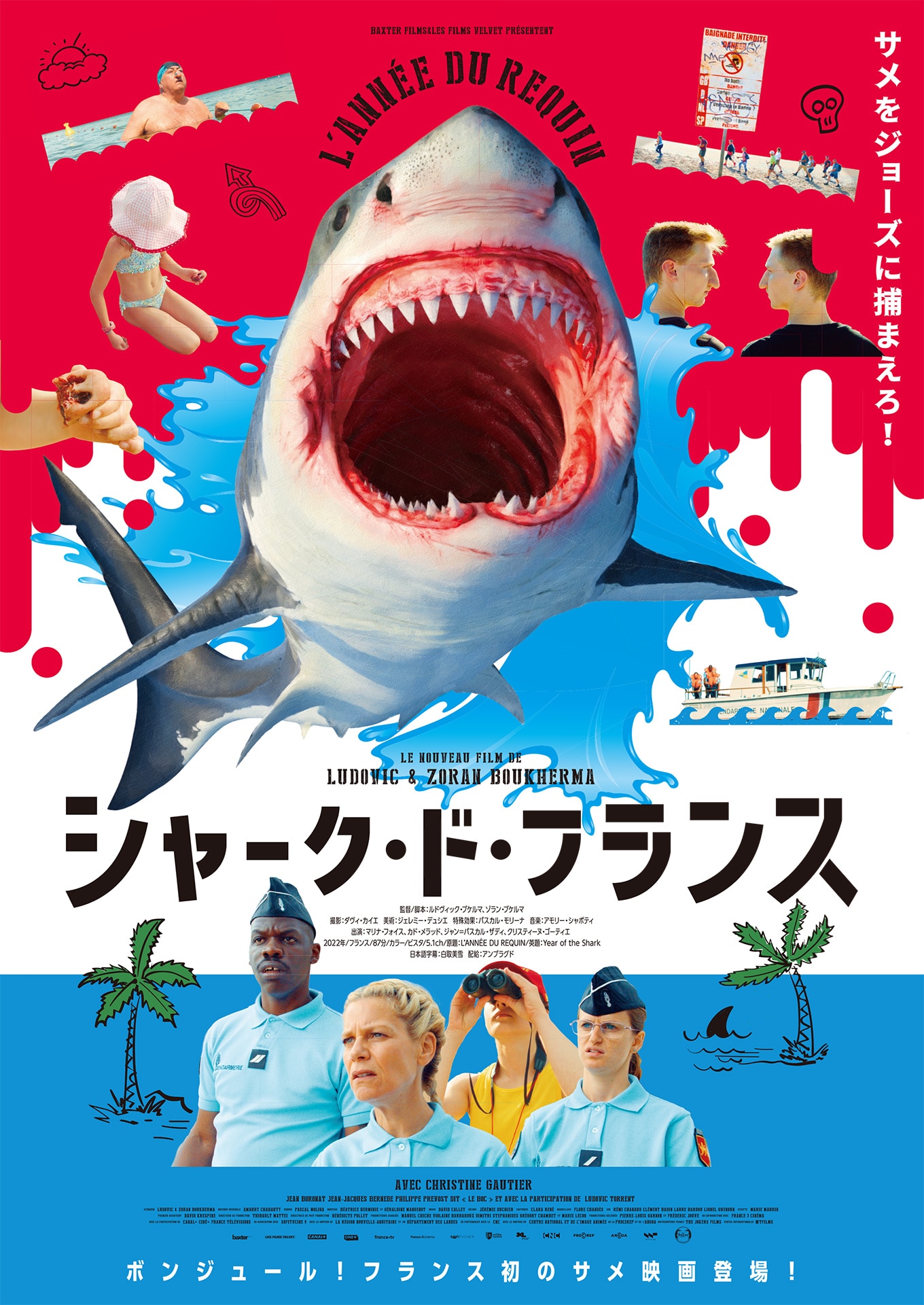 「シャーク・ド・フランス」は単独製作としてはフランス初のサメ映画。引退間近の海上警察官が、平和なビーチリゾートに現れたサメと対峙するという「ジョーズ」的な設定だが、全編を覆うのはシュールな笑いとシニカルな人間模様。独特のゆるいテンポで進む物語は、「サメの恐怖」よりも「人間社会の滑稽さ」に焦点を当てており、サメにばかり注目して「ジョーズ」の社会派な側面を顧みなかったサメ映画界に反省を促す、初心者にもってこいの作品だ。
