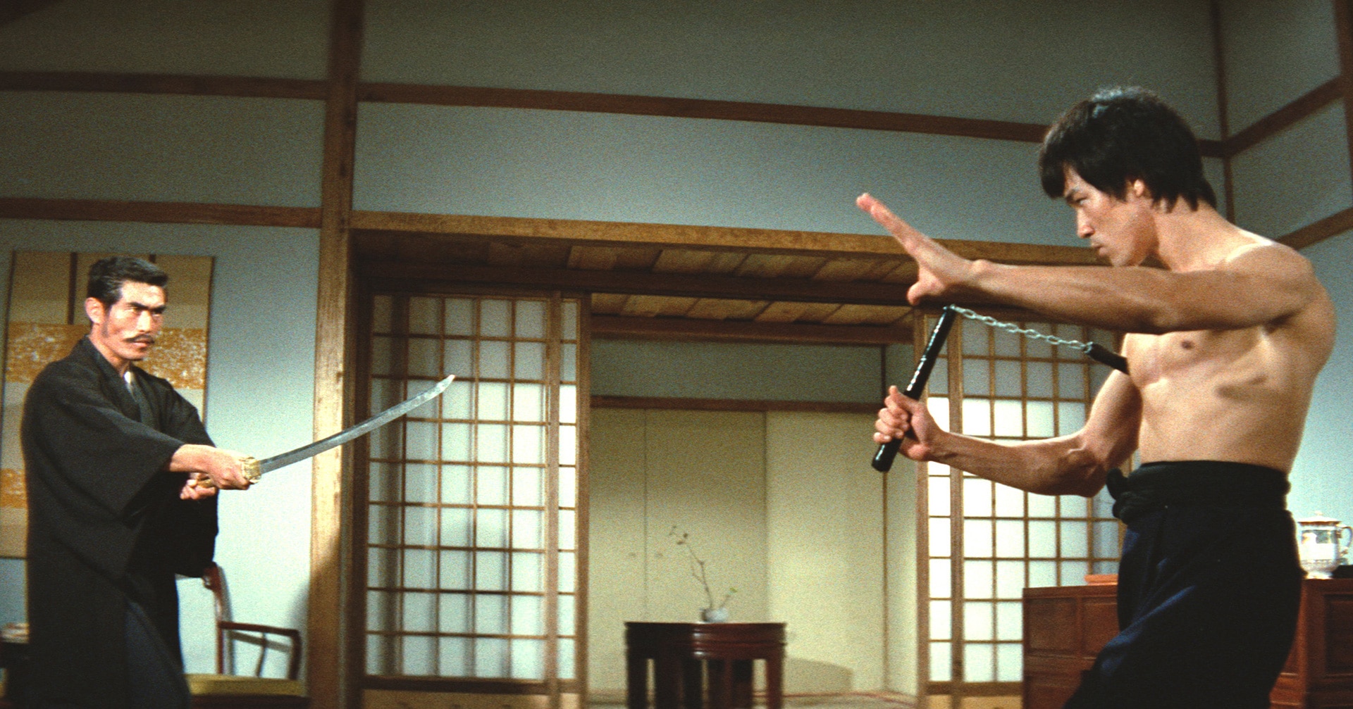 この大ヒットを受けて製作されたのが「ドラゴン怒りの鉄拳」だ。本作からブルースが武術指導を担当し、これまでの香港映画とは一線を画する“ホンモノの武道”がスクリーンに登場。全編にわたって緊張感溢れるアクションが続き、悲壮感溢れるラストまで隙の無い出来となり、本作をブルースのベスト作品とするファンが多いのも納得である。