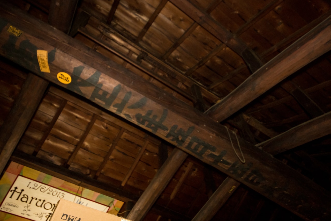 「この店は大正時代に建てられた建物をそのまま使っていて、今年で築101年目を迎えました。店の天井には今でも“大正6年5月15日”と築年月が書かれた梁が残っています。もともとは、今の大家さんのおじいさんにあたる方が日本酒の仕入れ蔵として使っていました。長い間日本酒を販売されていたのですが酒蔵を閉めることになったときに、初代店長の方が建物を借りたいと当時の大家さんにお願いしたんです。彼はその建物を “磔磔”と名付けて、レコード喫茶をオープンさせました。それが今から44年前のことですね。僕の父は店でアルバイトとして働いていたのですが、1、2年後には父が店を任されるようになり、ライブハウスとして経営を始めたことで“ライブハウス磔磔”の歴史がスタートしました」