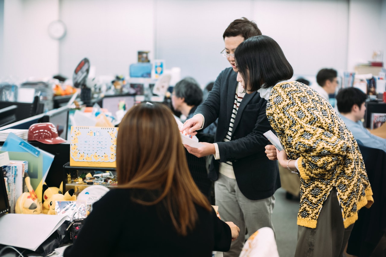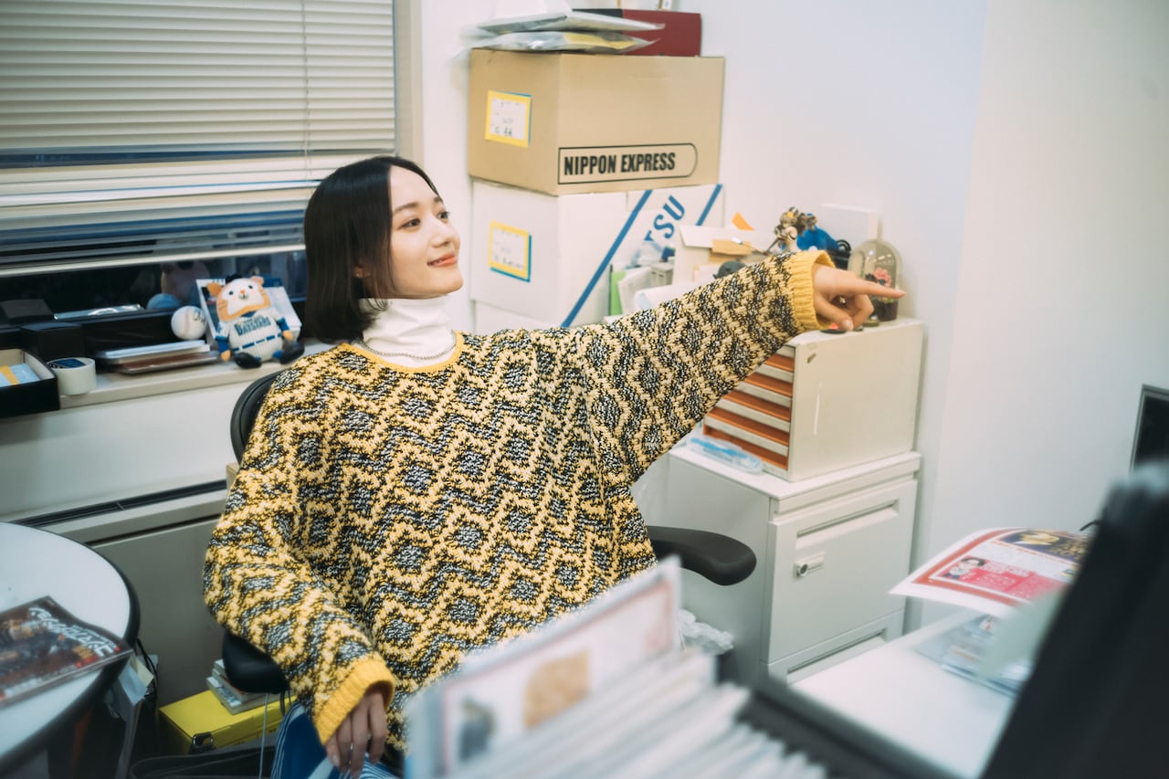 大量のポケモングッズが置かれた机を発見して、興味津々ののっちさん。話を聞くと、そこはポケモンを担当する編集者の席とのことで、「ちゃんとそのタイトルがめちゃめちゃ好きな人が記事を作ってるんですね」と感心していました。ちなみにその担当者は、昨年さまざまな販売店で配布されたポケモンの冊子の編集も手がけたそうで、のっちさんは「それ渋谷PARCOのポケモンセンターでもらったやつ!」と大喜び。そのほか、のっちさんが大好きな「ニーア オートマタ」のキャラクターが飾られたデスクなどもあり、のっちさんは「皆さん、自分の色を出してますね」と興味深そうに眺めていました。