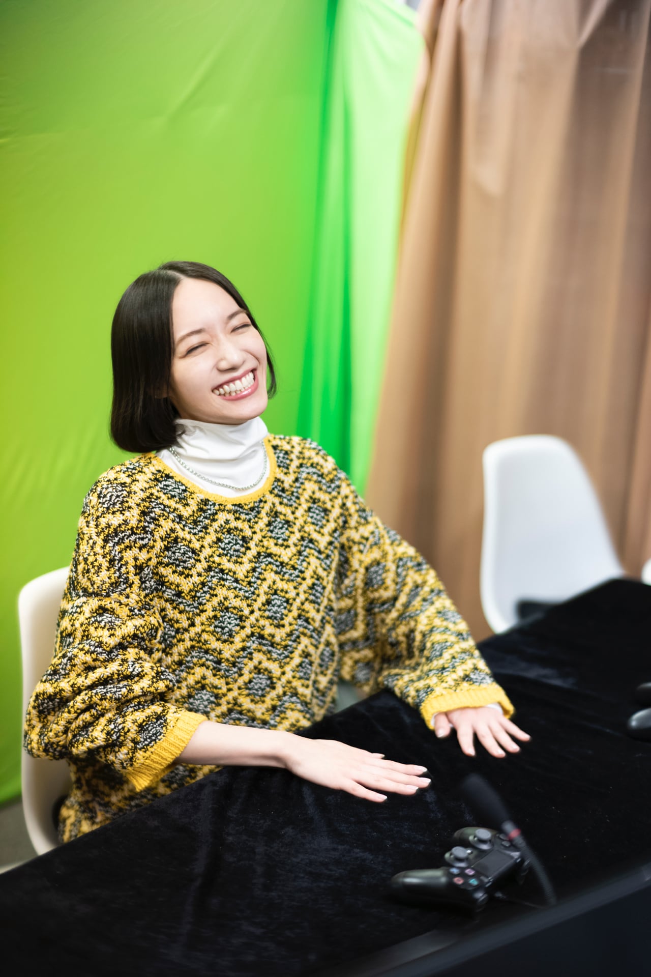 この編集部の一番の特徴は、YouTubeやニコニコ生放送のチャンネルで番組を配信するための専用スタジオがあること。グリーンバックの部屋の中で、声優やゲームクリエイターなどを迎えてのゲーム実況や、お酒を飲みながらのゆるいトークなどを毎日ライブ配信しています。中に入ったのっちさんは「すごい! 憧れのゲーム実況機材!」と興奮。実際に機材の前に座ってゲーム実況の感覚を味わいながら「これ会社に欲しいな……アミューズにも俳優さんとかで実況してる人がいるし、会社にこの機材があったらいろんな人が使えるのにな……」とうらやましそうにしていました。