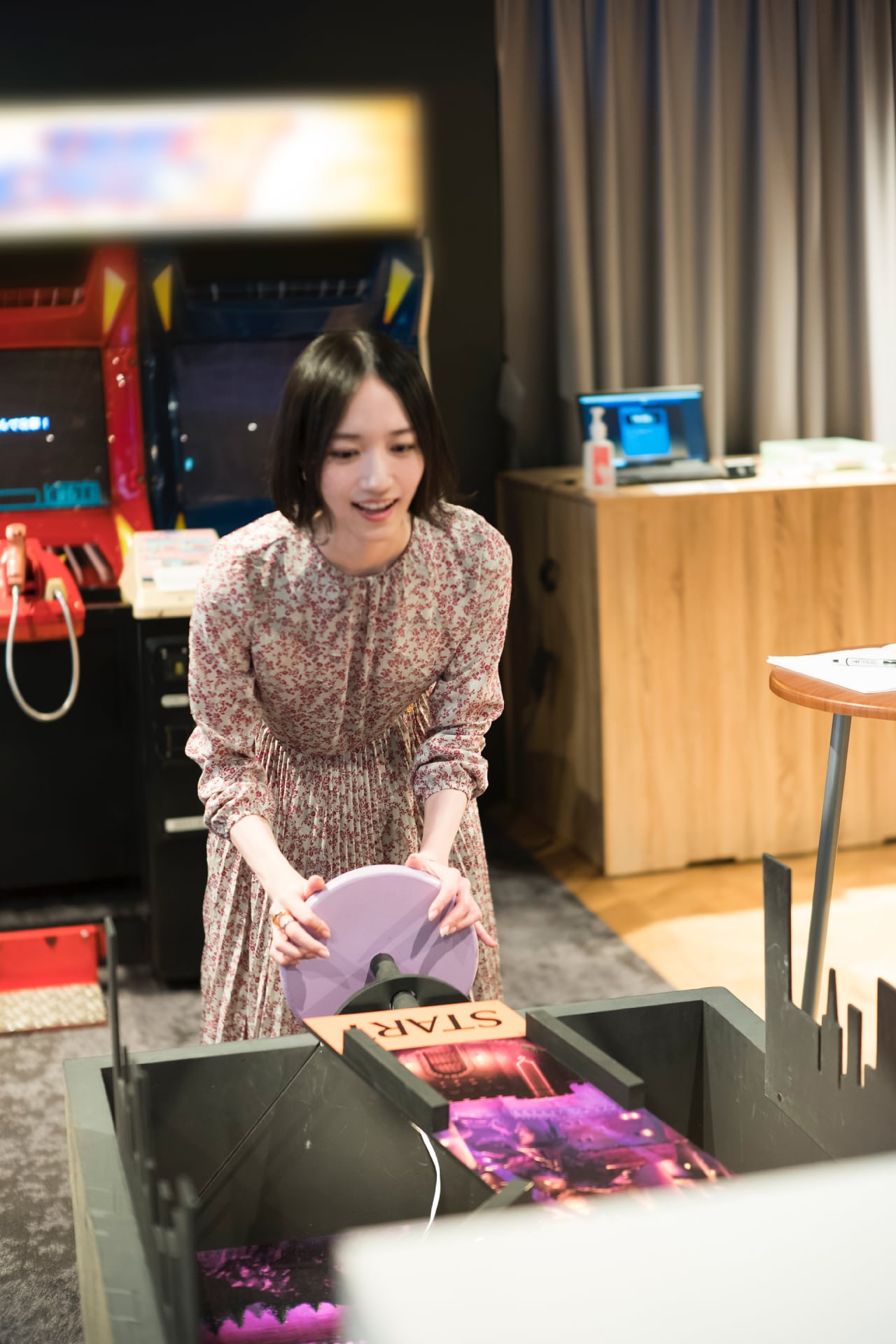 最後に訪れたのはリフレッシュエリア。「新しいゲームを作り出すためには温故知新が必要」ということで、ここには古いアーケードゲームの筐体などが置かれたゲームセンターや、古今東西のボードゲームが自由に遊べるカフェがあります。のっちさんは足を踏み入れるや否や「ここで働きたい……!」と感嘆のため息。ゲームセンターでは、千葉・幕張メッセで開催された「Fate/Grand Order Fes. 2019 ~カルデアパーク~」にて稼働していたメカエリチャンの玉転がしゲーム「チェイテピラミッド姫路城クライム」に挑戦し、見事一発でクリアしました。