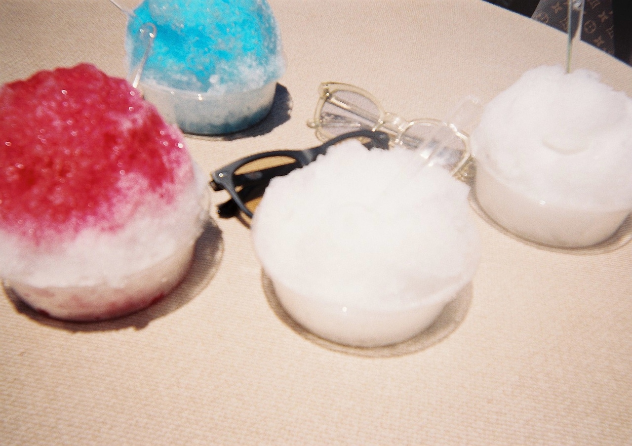 撮影用にイチゴとブルーハワイを用意しましたが、2人が実際に頼んだのはカルピス味のかき氷です。