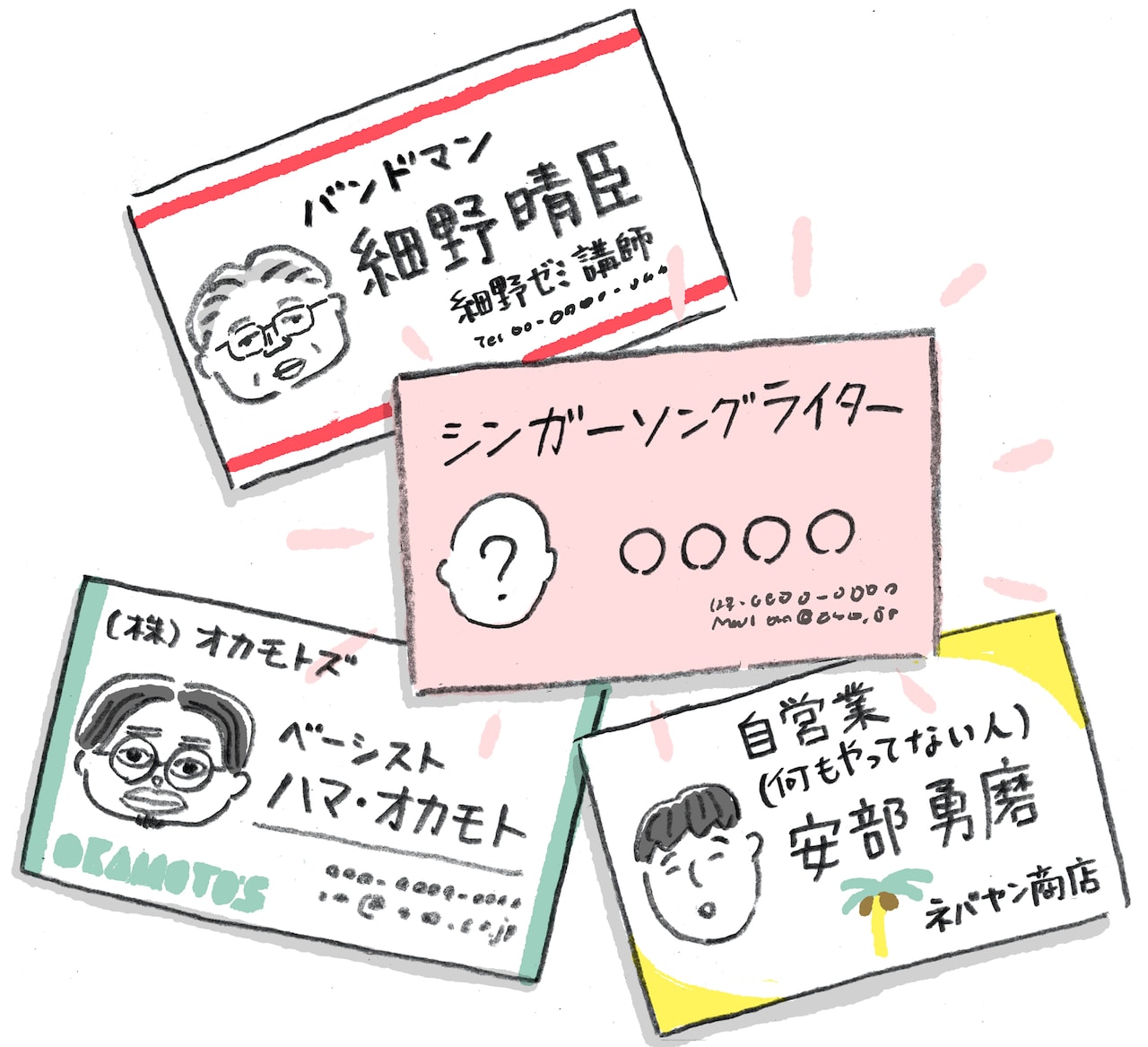 細野 うん、わかるよ。以前、もらったデモCDに「自分はシンガーソングライターです」という紹介文が入っていたな。今、シンガーソングライターというのは、“そういうふうに自分たちを呼びたい人たち”が使っている言葉なのかもしれないよね。ちなみにプロフィールに載せる肩書きとか、2人はどうしているの?