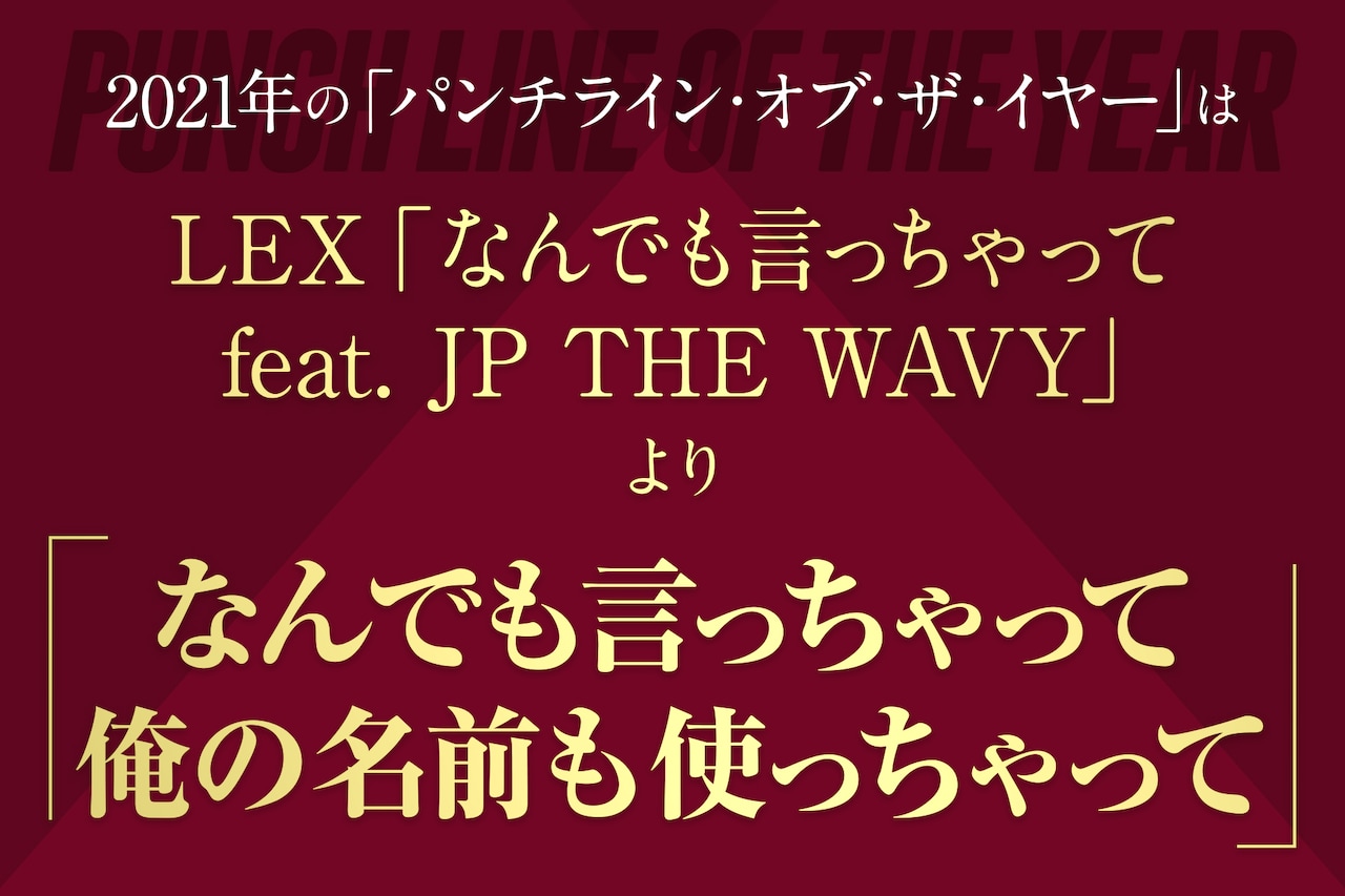 渡辺 「なんでも言っちゃって」というフレーズは、去年のギャルの流行語をまとめた「egg流行語大賞2021」にも選ばれたんですけど、これに対してLEX本人は「そんなもののために俺はラップやってるわけじゃないから悲しい」と反応していたんですよね。でも「俺の名前も使っちゃって」まで含めることで、ただの流行語というのにとどまらない、ストーリーや新しさが現れる気がします。
