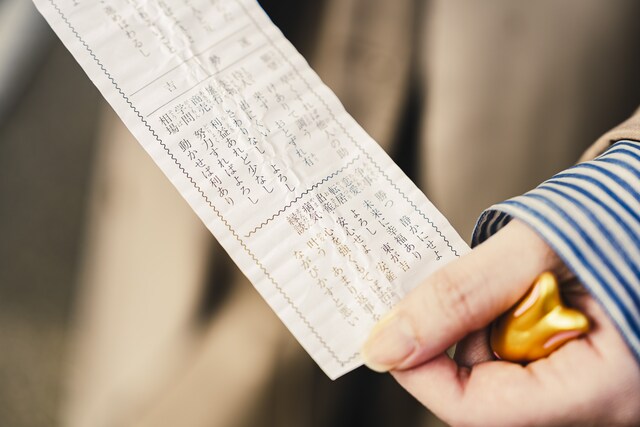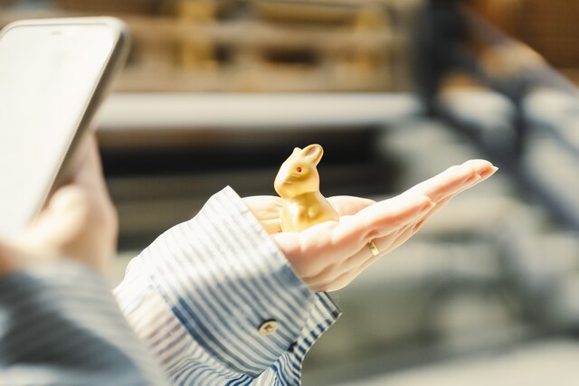 干支のウサギのおみくじ。白とピンクもありましたが、土岐さんは金をチョイス。