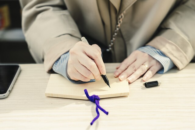 しっかりと願いを込めてペンを走らせる土岐さん。