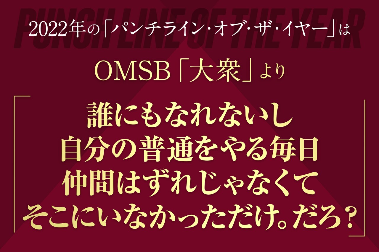 明確なメッセージが込められたOMSBのアルバム、Fuji Taitoの全年齢対象ヒット曲、独自の言語を作り出した志人 | パンチライン・オブ・ザ・イヤー2022 (後編) https://t.co/eXuMtsuHmS