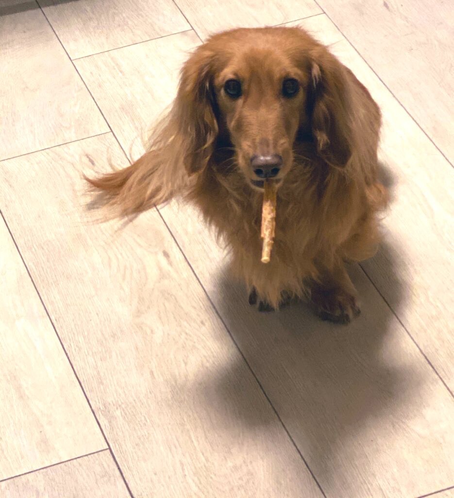 ラッキーは芸達者です! お手おすわり伏せ待て以外にも、ハイタッチや、倒れる真似、鼻先におやつを乗せて待てもできるんです! マジ自慢です!