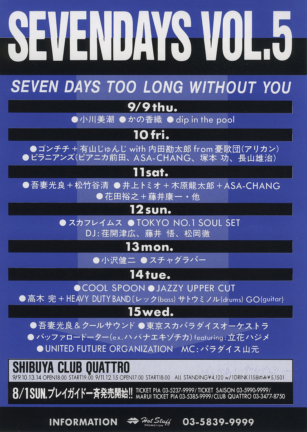 小沢 93年にクアトロ(渋谷CLUB QUATTRO)で俺とスチャダラが対バンしたときにドラム(青木達之)、ベース(井上富雄)、ピアノ(中西康晴)にSHINCOが入った形でやってみたのがいい感じで、だから「ブギー・バック」も最初はArrested Developmentみたいな曲をイメージしてたよね。