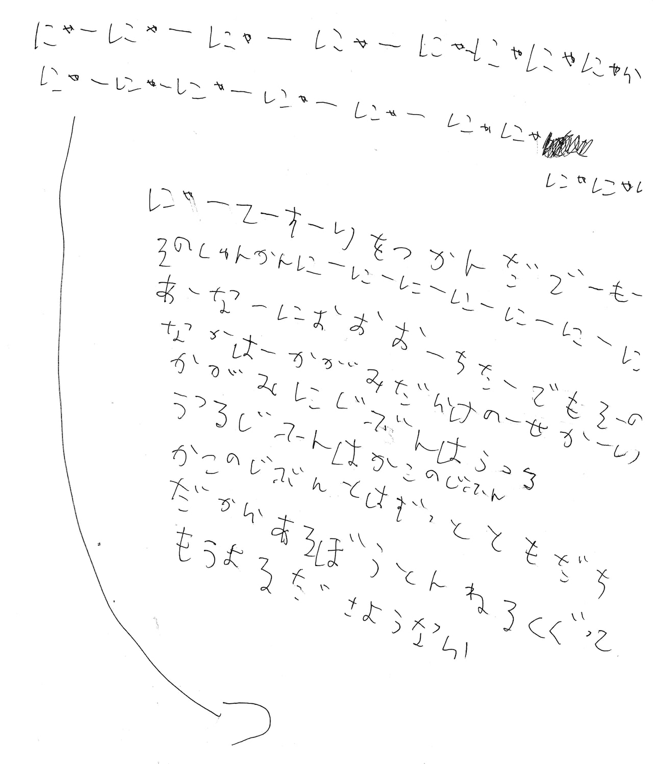 王子 「ニャズ2」は自分で今作ってる。「ニャズ2」は「手すりをつかんだ」までは「ニャズ」と歌詞が一緒なんだけど「穴に落ちた その中は“宇宙”」ってなる。
