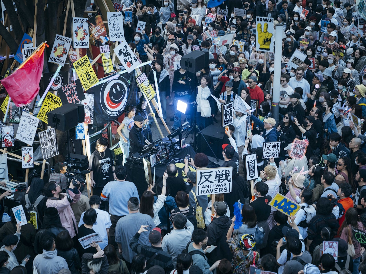 パーティとして最高だった。3月29日16:00から東京・新宿駅東南口の広場で行われたブロックパーティ「DROP BASS NOT BOMBS」のことだ。これはProtest Rave、クソデカフラッグ部、路哲(路上哲学読書会)という3つの団体が共同開催したもので、「爆弾ではなくベースを落とせ」というタイトルからして気が利いていた。この路上パーティの主張は明快だ。