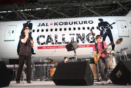「JAL×コブクロ・ジェット」羽田空港からテイクオフ http://natalie.mu/news/show/id/19290