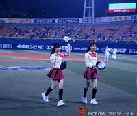 キャナァーリ倶楽部おがまな&みっきー、初の始球式大成功 - 音楽ナタリー