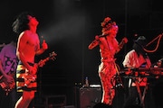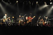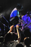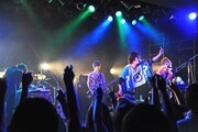 続く髭は「髭よさらば」からパフォーマンスをスタート。開始早々から川崎“フィリポ”裕利(Dr, Per)が旗を振ってオーディエンスを煽ったり、佐藤“コテイスイ”康一(Per, Dr)が拡声器を使ってコーラスに参加したりとステージに立った7人が所狭しと熱いパフォーマンスを見せつけた。続けて「溺れる猿が藁をもつかむ」が披露されると、大歓声とともに会場の熱気はさらに上昇。そしてその勢いを保ったままメンバーは「ハリキリ坊やのブリティッシュ・ジョーク」「さよならフェンダー」「テキーラ!テキーラ!」など人気ナンバーの数々を惜しみなく投下した。