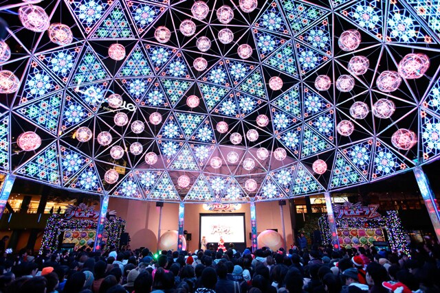 「毎年クリスマスプレゼントにお願いしていたのはゲームでした。ゲームがこうやって思い出になっていくんですね」とクリスマスの思い出を語ったしょこたん。点灯式では「パズドラZ」の発売元であるガンホー・オンライン・エンターテイメント代表取締役・森下一喜氏と、「パズドラ」シリーズの総合プロデューサー・山本大介氏も“ドラゴンサンタ”となって登壇し、「パズドラ」をイメージしたイルミネーションに明かりが灯された。