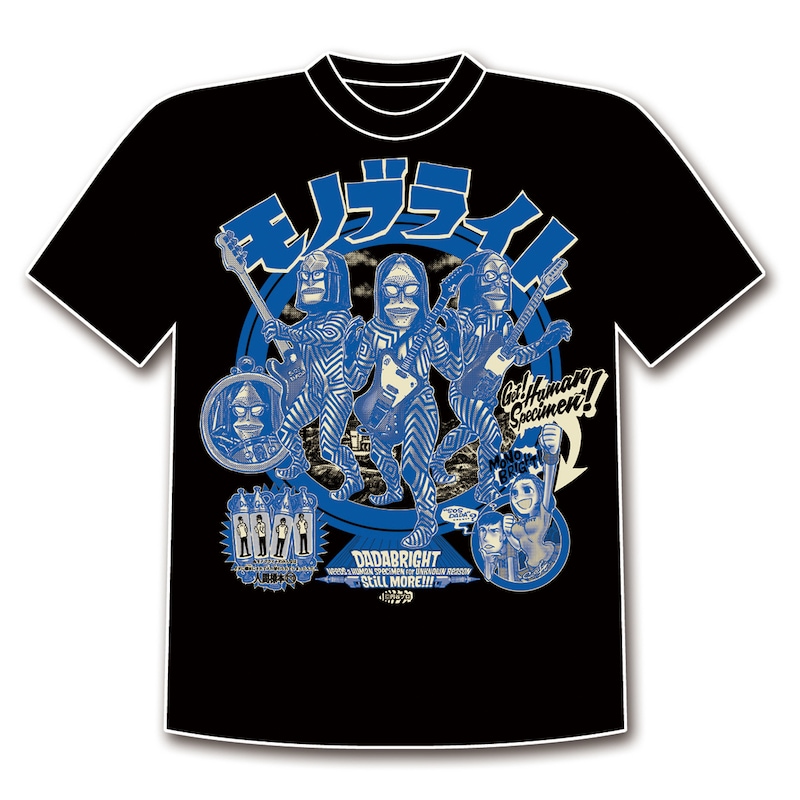 今回発売されるTシャツのデザインは出口博之(B)とイラストレーターSuperLogという2人の怪獣マニアが担当。「今まで見た事の無い怪獣Tシャツを作ろう」というコンセプトのもと、メガネをかけ、どこかMONOBRIGHTメンバーをイメージさせる顔つきに生まれ変わったダダのイラストと「