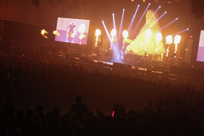 まずは聖誕祭を迎え16歳となったSU-METALが1人でステージに登場し、ピアノアレンジされた「紅月‐アカツキ‐」をソロで初披露。彼女の気持ちのこもった歌声がフロアに響き渡ると、エモーショナルなバラードに感動し涙ぐむ者も。そんな空気を一変させるようにメンバーは最後に「BABYMETAL DEATH」でフロアの熱気を爆発させ、爆音とともにステージセットが崩壊するという衝撃的なラストを見せつけてライブの幕を閉じた。またラストシーンではSU-METALが十字架にはりつけにされ再び深い眠りにつき、YUIMETALとMOAMETALが伝説のコルセットを首に装着するといった今後の展開を予感させる演出が施された。