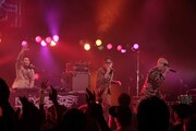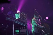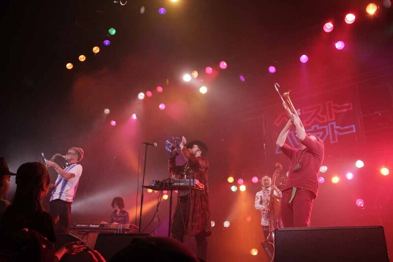 「次は僕らが一緒にやるきっかけになった曲をやります」という社長の声からはじめられたのは、SOIL & "PIMP" SESSIONS演奏の「Shaft in Africa」上でライムスターの「ライムスターイズインザハウス」が乗るスペシャルバージョン。「とあるフェスの打ち上げでこの曲をノリでやったら、本当に気持ちよくて。それが「ジャズィ・カンヴァセイション』につながっていったんです」と語る通り、誰よりもステージに立つ9人全員がセッションならではの、偶発的なスリルと迫力を心底楽しんでいる様子だった。