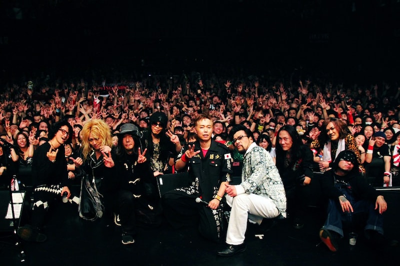 華麗なヌンチャクさばきを見せ、筋少のライブを締めくくった大槻は特撮のメンバーをステージに呼び寄せる。そして両バンドを代表して三柴とNARASAKI、ARIMATSUがあいさつし、The Band「The Weight」をBGMに全出演者とオーディエンスとが記念撮影をしたところで異例の対バンライブは大団円を迎えた。