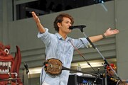 続けて演奏されたのは「GLOCAL」収録のアップテンポチューン「エール」。曲のビートに合わせて新里がタオルを振り回し、観客も持参のタオルを頭上に掲げる。新里はそのまま客席に近づいたり2階のファンを煽り立てたりして会場を盛り上げた。そして曲が終わり、名嘉俊(Dr)が今回初披露となるアルバム収録曲「Have a ice day」について「この曲はメロディも覚えやすくてリズムもいいので、買い物なんかもはかどっちゃうんじゃないかな」と説明する。披露された楽曲は鈴の音が特徴的な四つ打ちビートとさわやかなサウンドが組み合わさったキャッチーなナンバー。初めて聴くファンも曲の後半には合唱に参加していた。