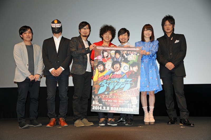 「Go!Go!家電男子THE MOVIE~アフレコパニック~」はユナイテッドシネマ豊洲ほか全国5カ所で3月14日まで公開されている作品。家電姿の男子大学生らが登場するWEB配信アニメを映画化し、アニメだけでなく各声優らが本人役で登場する実写映像も織り交ぜた内容となっている。映画の公開を記念して行われたこのイベントには実写パート担当の川村清人監督、アニメ担当のROKUGOU監督のほか、声優兼出演者の中山祐一朗、松居大悟、浜野謙太、