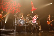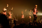 再びステージに登場した微熱DANJIとグループ魂の石鹸(Dr)によるコントが展開された後は、いよいよ氣志團が登場。西園寺瞳(G)の聴きなれないフレーズで始まった1曲目は、舞台「高校中パニック!小激突!!」に使用されていた「高校中パニック!のテーマ」。彼らが歌詞をメンバー紹介に替えて披露すると、フロアからは驚きと喜びの混じった歓声が上がった。
