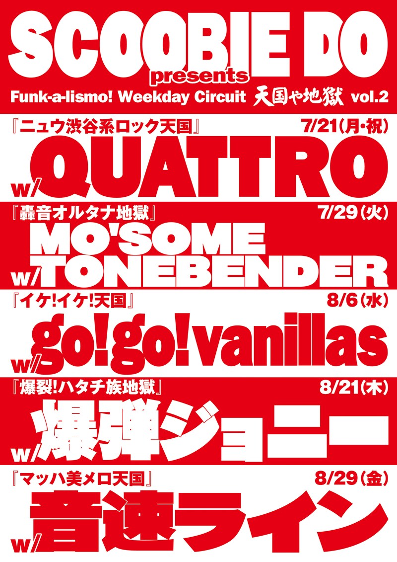 大先輩との初対バン!よろしくお願いいたします!一旦地獄を突き抜けて天国いこうぜ! RT @natalie_mu: スクービー「天国や地獄」対バンにQUATTRO、モーサムら http://t.co/qkao6k2hRJ