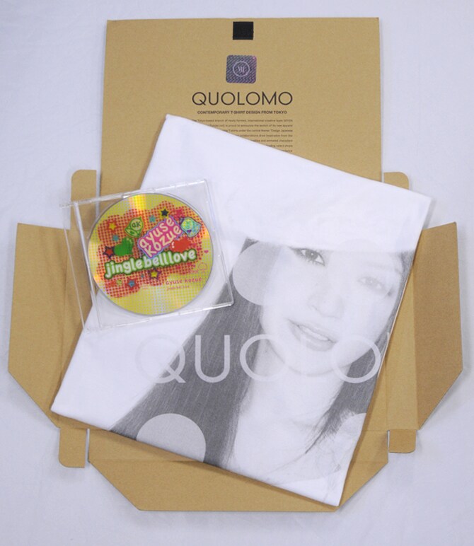 CDに収録されるのは12月3日にiTunes Storeとモバイルで先行配信された、セルフプロデュースによる10分弱のクリスマスソング「Jingle bell love」。TシャツはQUOLOMOブランドの冬バージョンで、モノクロで撮り下ろされたAYUSE KOZUEのポートレートがプリントされている。