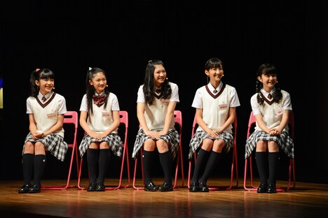 2部もメンバーの自己紹介からスタート。水野は「5人ともすごく緊張しているんですけど、優しく見守ってくれたらうれしいです、がんばります!」と挨拶し、大賀は「今日も希望の花を父兄さんの心の中にいっぱいいっぱい……咲かせちゃうぞ」とクールに決めて会場を沸かせた。